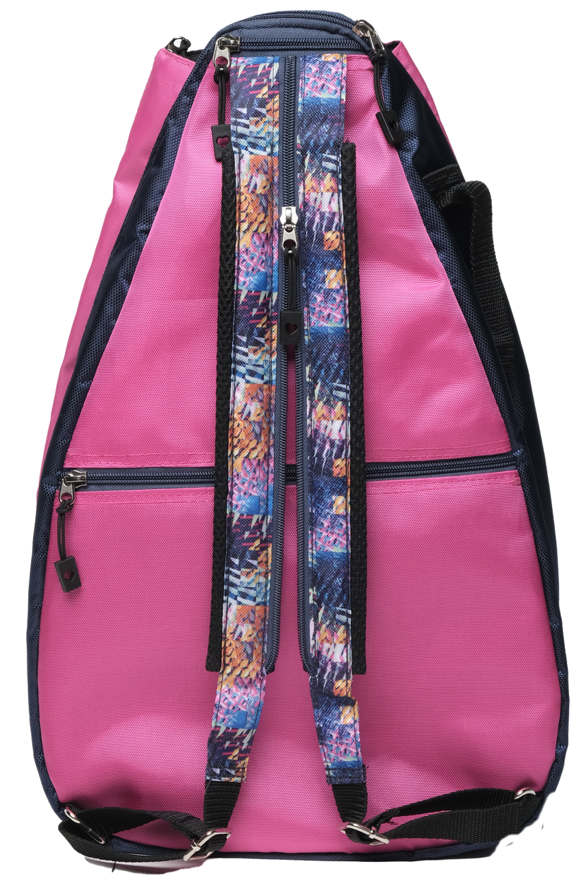 Glove It’s tennis backpacks are perfect for fashion minded tennis players! Carry a bag that is unique, fashionable, and holds everything you need to dominate on the court. Glove It tennis backpacks are fun and functional. Racquet compartment fits two racquets, and features strap that can be worn as a sling or unzipped to be used as a backpack. Utilize the name tag compartment to keep track of your bag. The Glove It tennis backpacks also have a hidden top hook for hanging your backpack on a fence with ease.